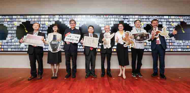 z6mg·人生就是博携手创利空间为故宫建置的智慧文物互动导览墙及轮播墙,,,今日正式启用。。。(左四:z6mg·人生就是博新事业暨投资管理总部副总经理杨本豫、、右四:故宫博物院院长吴密察、、、、右三:太极影音董事长黄宝云)